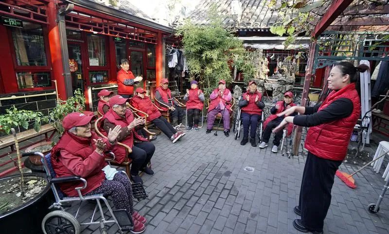近年来,北京市着眼老年人多层次、多样化、品质化的养老服务需求,构建了以区级养老服务指导中心为统筹、街道(乡镇)区域养老服务中心为主体、社区养老服务驿站和专业服务商为延伸的三级养老服务网络,让老年人在家门口享受便捷实惠的普惠型养老服务。图为东城区芙蓉养老照料中心的老人们在学习健身操。新华社记者 李欣 摄