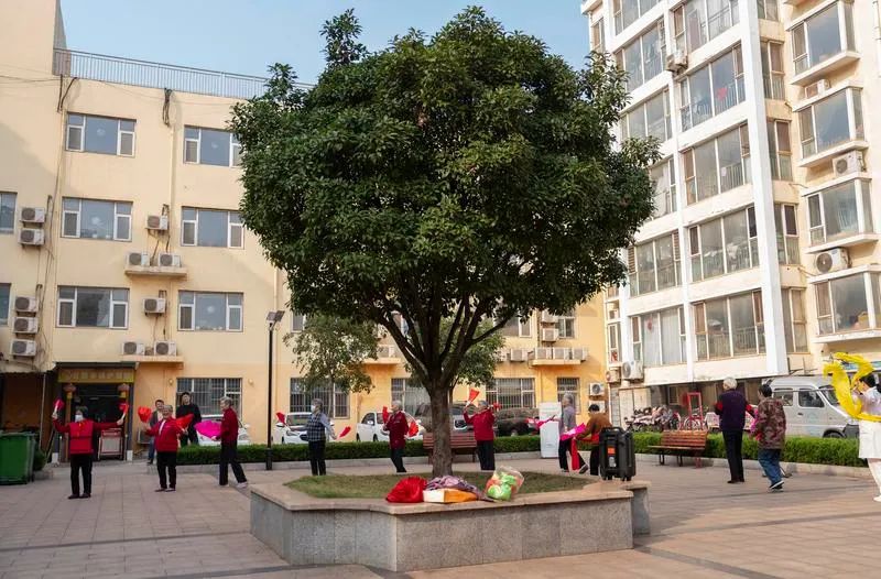 近年来,山东省日照市立足提升居家社区养老服务供给,支持社会力量参与养老服务,积极探索医康养相结合的养老服务格局等,满足老年人多方面养老服务需求,多措并举完善养老体系。图为在提供综合养老服务的日照中盛幸福苑,老人在室外扭秧歌。新华社记者 才扬 摄