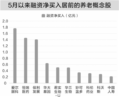 5月以来,约半数概念股获得杠杆资金加仓,其中爱尔眼科、恒瑞医药、保利发展的融资净买入额居前,均超1亿元。