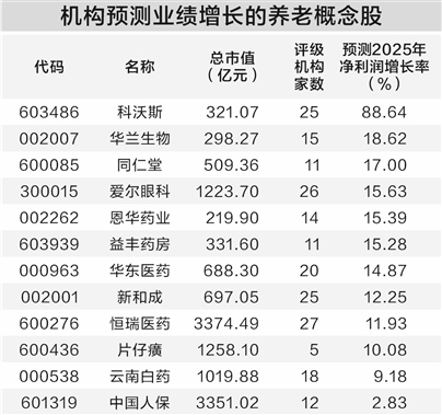 一季报净利润超1亿元的绩优概念股中,有12股获得至少5家机构给予评级,且机构一致预测2025年业绩有望增长,科沃斯、华兰生物、同仁堂的预测净利润增幅分别为88.64%、18.62%和17%。