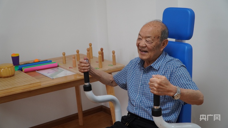 养老机构中老人正在进行锻炼(央广网记者 魏文青 摄)