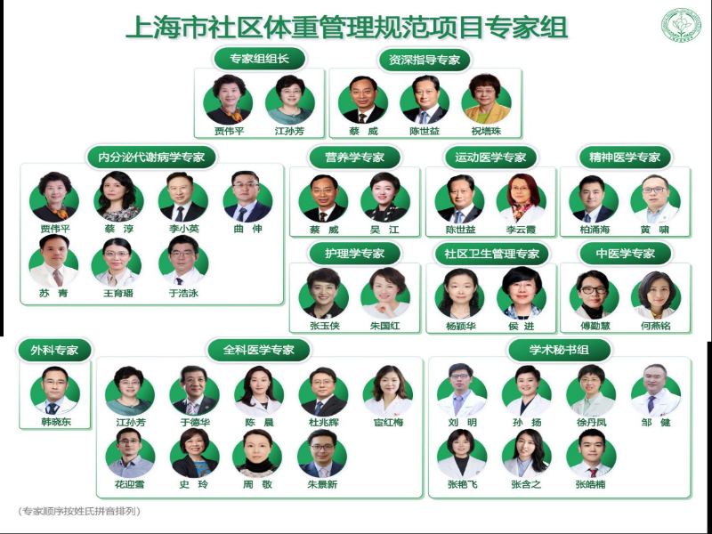 上海市社区体重管理规范项目专家组