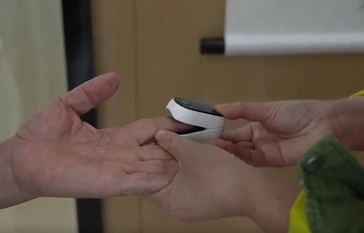 杭州临安区天目山镇月亮桥村未来养老中心,工作人员利用智慧问诊系统指导老年人进行健康检查。