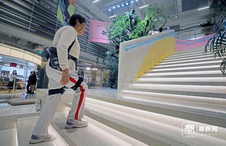 老人体验轻量级外骨骼机器人。记者 曹坚 林云龙 摄