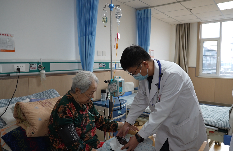 曙光乡卫生院医养分院医护人员照顾生病老人(张丹 摄)