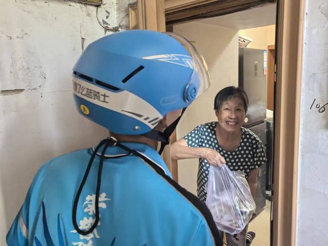 为老年人送餐上门/记者拍摄