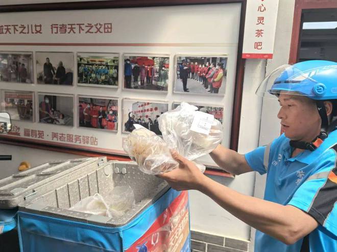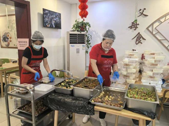 老年餐桌是社区养老服务驿站提供的多种居家养老服务功能之一。老人不仅能来餐厅现场就餐和买饭回家,对于有实际困难的老人还能把热乎饭送到家里。福寿苑养老驿站运营总监王鹤飞说,团结湖区养老服务中心辐射团结湖、呼家楼以及周边5公里以内的19个街道,50个社区。中心与饿了么做了一个配送的模式,保障独居、失能以及80岁高龄的这部分老人的用餐需求。通过上门服务,给老人配送。
