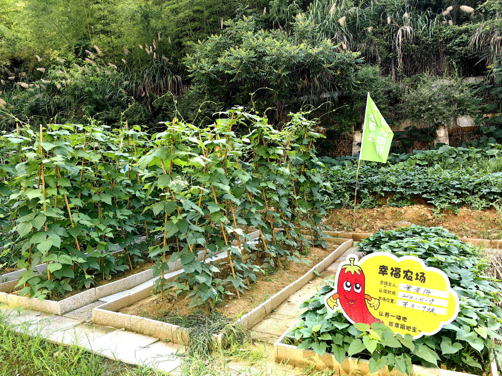 细看院内,被围起的菜地分割成大小相等的方格,种着长势喜人的蔬菜,每块菜地前都立着写有种植者姓名的牌子。社区负责人江益华介绍:“这些都是我们康养社区的老人种的,考虑有些老人身体好,之前生活在农村,我们就想着买些蔬菜种子给他们种着玩。前段时间,他们种的四季豆丰收了,我们食堂就给他们炒成菜,让他们在辛勤的劳作中找到了生活的乐趣与价值。”