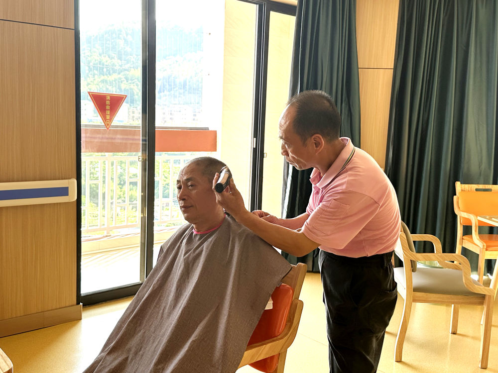 松溪伍心生态康养社区工作人员正在为老人免费理发。范鑫琳 摄