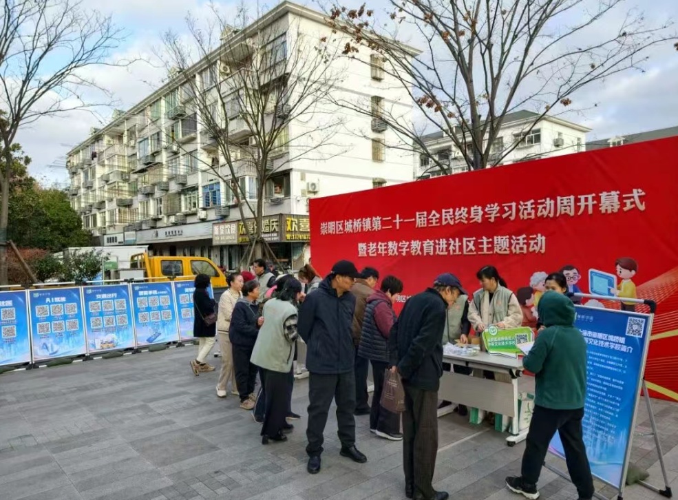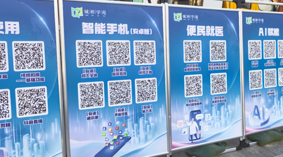 不久前,城桥镇成人学校城桥校区的教师志愿者团队还走进位于城西口袋公园的早市便民广场,设置宣传展板、现场指导“码上学”以及发放银发数字教育学习手册。其中,宣传展板精准对接老年人高频数字需求,科学划分抖音使用、智能手机操作、便民就医等核心板块,整合了40余个实用学习二维码,“一码一技能”的设计让数字学习内容更易于老年人理解和掌握。“视频一步一步教,特别清晰,学了之后不管是找美食、查旅游攻略都能用得上,对我们老年人出行、生活都很有帮助。”一位市民说。