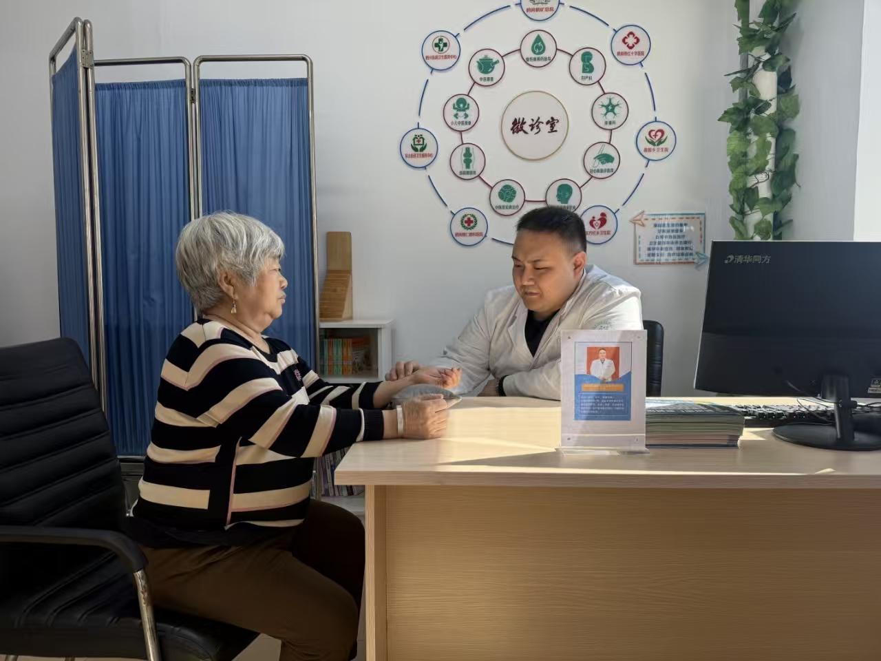 鹤岗市市区两级医院医护人员定期到益新社区党群服务中心的微诊室坐诊。社区卫生服务中心还免费为社区内65岁以上老人体检,并建立健康档案。